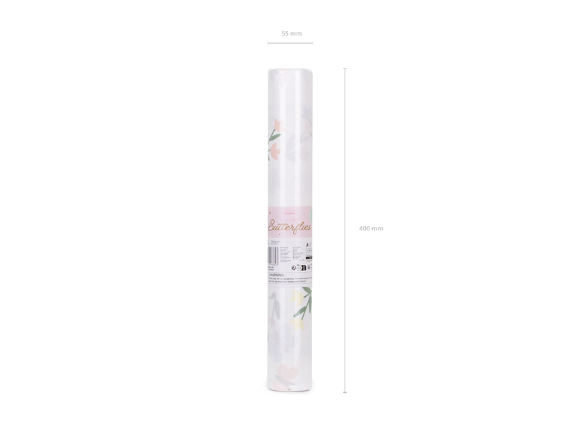 Bieżnik z flizeliny z nadrukiem Kwiatki i Motyle, szerokość ok. 40 cm, długość ok. 5 m.