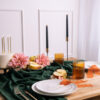 Bieżnik szyfonowy w kolorze butelkowej zieleni, szerokość ok. 48 cm, długość ok. 5 m.