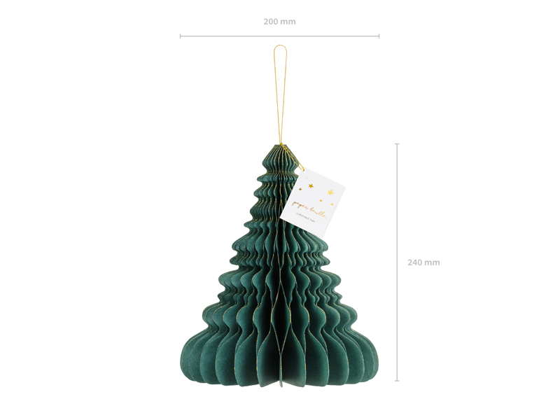 Bombka papierowa honeycomb Choinka w kolorze butelkowej zieleni, wysokość ok. 24 cm.