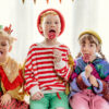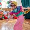 Kołnierzyk z błyszczącymi dwukolorowymi zielono-niebieskimi cekinami z fioletową falbanką. Przeznaczona dla dzieci w wieku 3-7 lat.