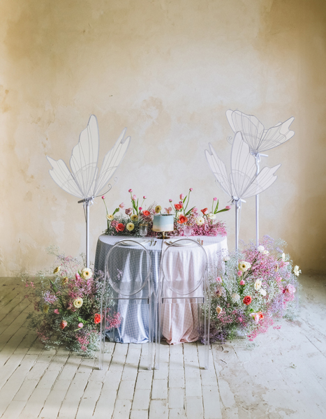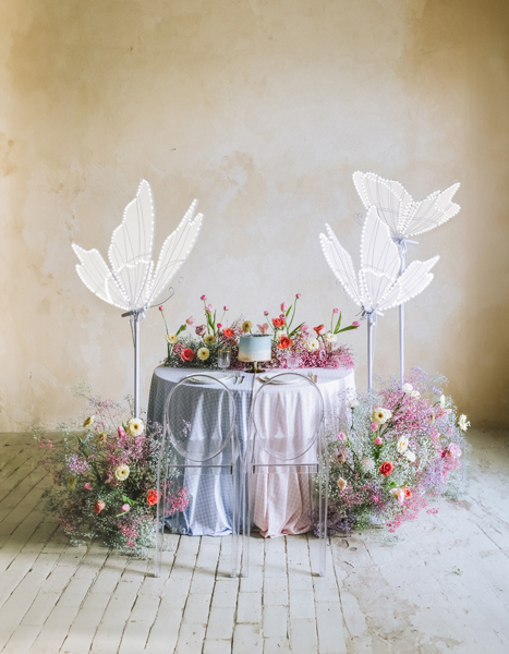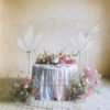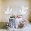 Dekoracja LED Motyl w kolorze białym, na jasnoszarym stelażu. Wysokość zestawu ok. 178 lub ok. 146 cm, wymiary samego motyla 60x43x35 cm. Moc znamionowa ok. 15 W, napięcie znamionowe 12 V, wtyczka typu EU.