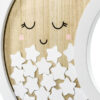 Drewniana księga gości, zestaw zawiera księgę w kształcie księżyca oraz 30 białych gwiazdek do wypisania, wymiary ok. 38,5 x 30 cm.