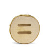 Drewniania podstawka z zagłębieniami na obrączki, średnica ok. 6 cm, wysokość ok. 4 cm, wymiary nacięć ok. 0,6 x 2,5 x 1,5 cm.