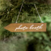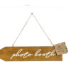Dwustronny drogowskaz wykonany z drewna z białym napisem Photo booth, wymiary drowowskazu: ok. 36 x 7,5 cm, długość sznurka ok. 60 cm.