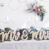 Drewniany napis Mr & Mrs, złoty, 50x10cm