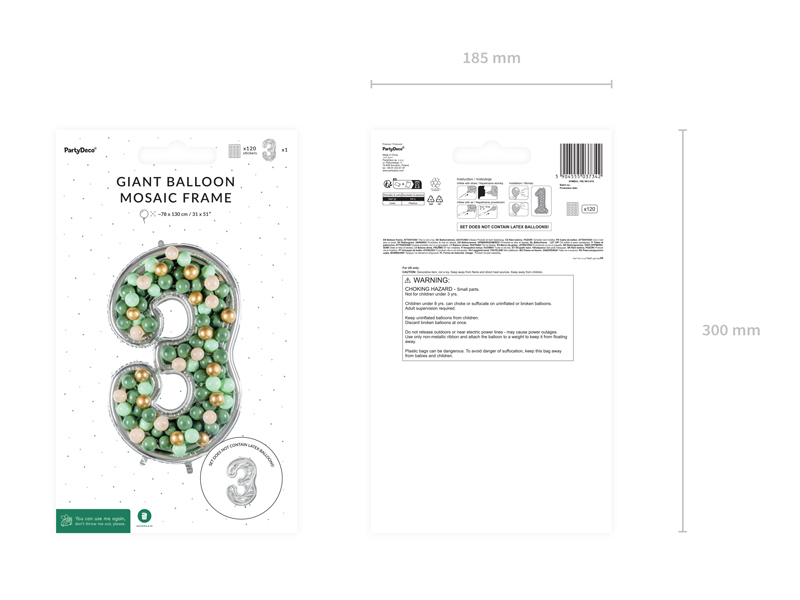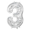 Forma Cyfra ”3” dla balonów lateksowych, 126cm, srebrne błyszczące