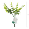 Sztuczny bukiecik gałązek eukaliptusowych w kolorze zielonym. Wysokość około 27 cm. W opakowaniu znajduje się jedna łodyga, od której odchodzi 5 gałązek z listkami.