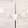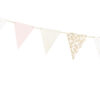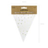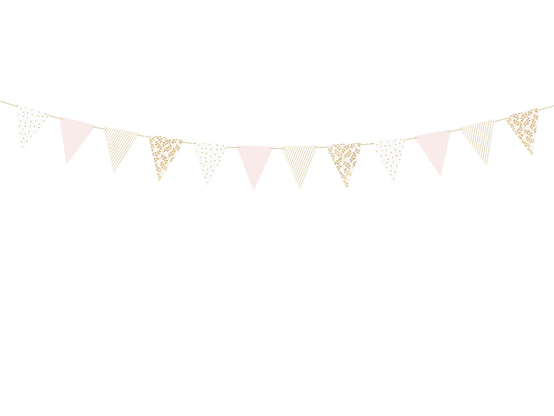 Girlanda flagietki, mix kolorów ze złotym nadrukiem, do samodzielnego złożenia, zestaw zawiera 12 flagietek i ok. 3 m złotego sznurka, wymiary po złożeniu: wysokość ok. 18 cm, długość ok. 2,1 m.