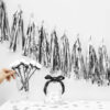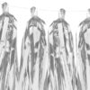 Girlanda frędzle, do samodzielnego złożenia, zestaw zawiera 12 frędzli w kolorze srebrnym lustrzanym i ok. 2 m białego sznurka, wymiary po złożeniu: wysokość ok. 30 cm, długość ok. 1,5 m.