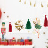 Girlanda papierowa Dziadek do orzechów, zestaw zawiera 6 tasseli w kolorach czerwonym i zielonym (po 3 z każdego koloru), 7 papierowych zawieszek (3 wzory) i ok. 3 m złotego sznurka. Długość ok. 2 m, wysokość ok. 16.5 cm. Produkt do samodzielnego zlożenia.