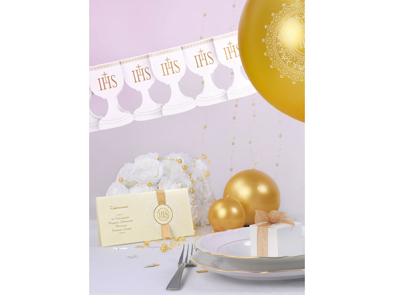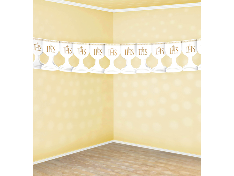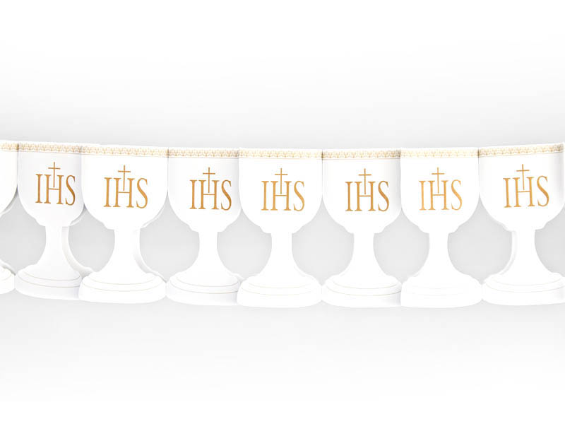 Girlanda papierowa Kielich w kolorze białym, wymiary 17 centymetrów x 3 metry.