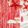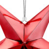 Gwiazda papierowa pięcioramienna wykonana z czerwonego lustrzanego papieru, ze srebrnym sznurkiem, średnica ok. 45 cm. Produkt do samodzielnego złożenia.
