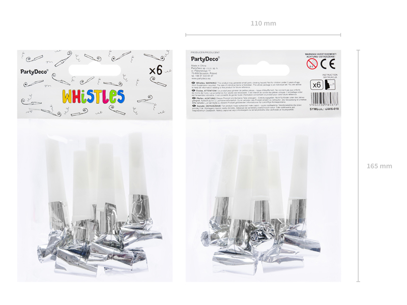 Gwizdki w kolorze srebrnym. (1 op. / 6 szt.)