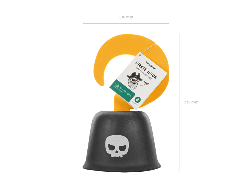 Hak pirata, czarny z żółtym hakiem. Wykonany z pianki. Wymiary produktu: długość 23 cm, średnica 12,5 cm.
