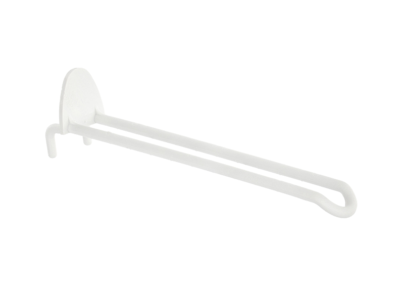 Plastikowe haki do standu w kolorze białym, długość ok. 15 cm. (1 op. / 5 szt.)