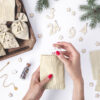 Kalendarz adwentowy Woreczki, zestaw zawiera: 3 wzory bawełnianych woreczków (po 8 z każdego wzoru, rozmiar ok. 10 x 13 cm), 24 bawełniane sznurki ( długość ok. 30 cm) i 24 drewniane numery. Produkt do samodzielnego złozenia.