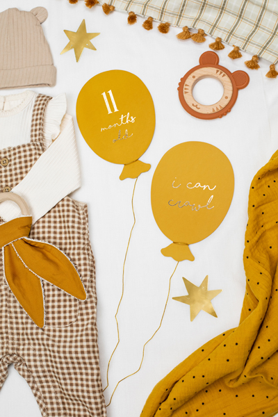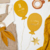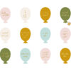 Karty do zdjęć Baloniki, mix kolorów, zestaw zawiera 12 kart w kształcie baloników z metalizowanym nadrukiem oraz 300 cm złotego sznurka, wymiar jednej karty ok. 11.5 x 17 cm.