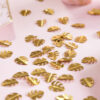 Konfetti metalizowane Liście w kolorze złotym, wymiary ok. 1,5 x 2 cm. Zestaw zawiera ok. 15 g konfetti.