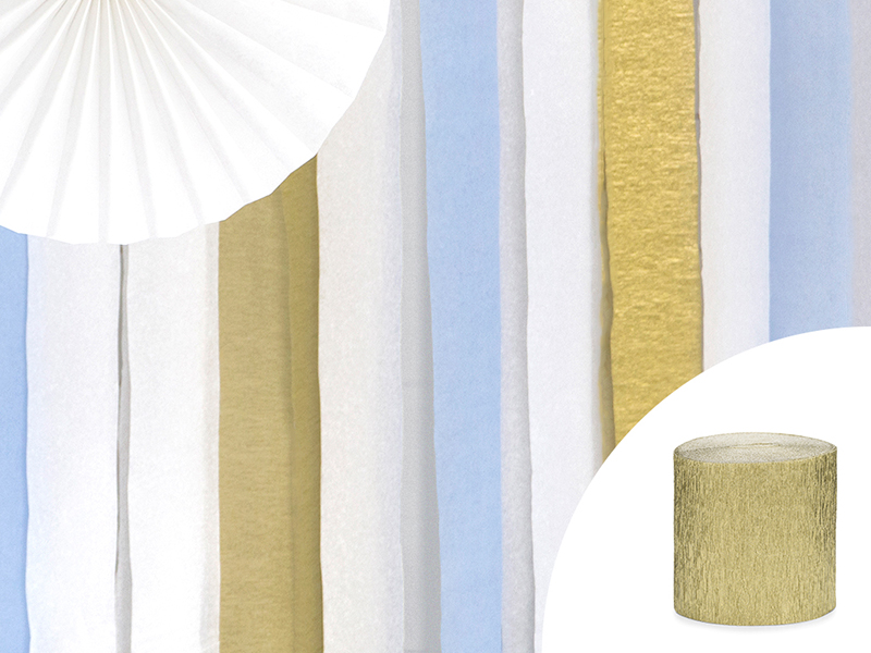 Krepa w kolorze złotym, szerokość ok. 5 cm, długość ok. 10 m (1 op. / 4 szt.)