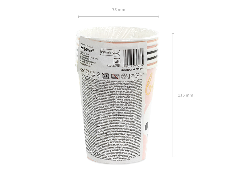 Kubeczki papierowe Boo!, zestaw zawiera 3 różne wzory kubeczków, po 2 szt. każdego wzoru, pojemność ok. 220 ml (7.4 oz). Kubki na napoje zawierają oznaczenia wymagane przez Rozporządzenie wykonawcze Komisji (UE) 2020/2151 z dnia 17 grudnia 2020 r. ustanawiające zasady dotyczące zharmonizowanych specyfikacji w odniesieniu do oznakowania produktów jednorazowego użytku z tworzyw sztucznych wymienionych w części D załącznika do dyrektywy Parlamentu Europejskiego i Rady (UE) 2019/904 w sprawie zmniejszenia wpływu niektórych produktów z tworzyw sztucznych na środowisko. Produkt zawiera etykietę wyłącznie w języku polskim, niemieckim, czeskim, francuskim, niderlandzkim, słowackim, słoweńskim i bułgarskim. (1 op. / 6 szt.)