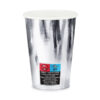 Kubeczki papierowe w kolorze srebrnym, pojemność ok. 220 ml. Kubki na napoje zawierają oznaczenia wymagane przez Rozporządzenie wykonawcze Komisji (UE) 2020/2151 z dnia 17 grudnia 2020 r. ustanawiające zasady dotyczące zharmonizowanych specyfikacji w odniesieniu do oznakowania produktów jednorazowego użytku z tworzyw sztucznych wymienionych w części D załącznika do dyrektywy Parlamentu Europejskiego i Rady (UE) 2019/904 w sprawie zmniejszenia wpływu niektórych produktów z tworzyw sztucznych na środowisko. Produkt zawiera etykietę wyłącznie w języku polskim, niemieckim, czeskim, francuskim, niderlandzkim, słowackim, słoweńskim i bułgarskim. (1 op. / 6 szt.)