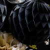 Kula bibułowa w kolorze czarnym o średnicy około 10 centymetrów.
