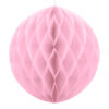 Kula bibułowa w kolorze jasnoróżowym o średnicy około 30 centymetrów.