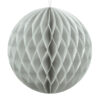 Kula bibułowa w kolorze jasnoszarym o średnicy ok. 10 cm.