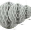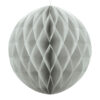 Kula bibułowa w kolorze jasnoszarym o średnicy ok. 30 cm.