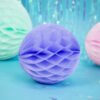 Kula bibułowa w kolorze liliowym o średnicy ok. 20 cm. Produkt wielokrotnego użytku. Montaż przy pomocy spinacza.