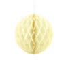 Kula bibułowa w kolorze słomkowym o średnicy około 20 centymetrów. Produkt wielokrotnego użytku. Montaż przy pomocy spinacza.