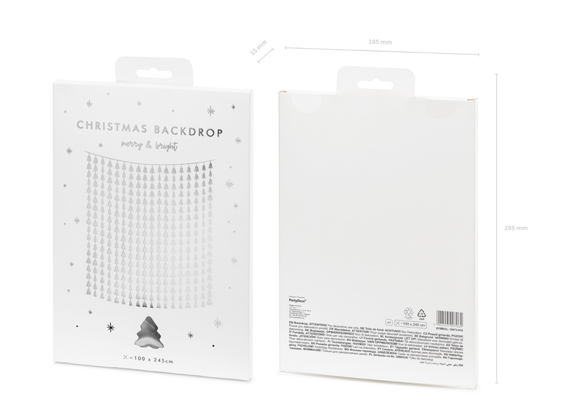 Kurtyna – Choinki wykonana z folii w kolorze srebrnym, wymiary: szerokość ok. 100 cm, długość ok. 245 cm