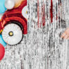 Kurtyna Party metalizowana w kolorze srebrnym, szerokość ok. 100 cm, wysokość ok. 200 cm. Wykonana z folii o grubości 20 µm.