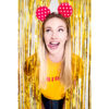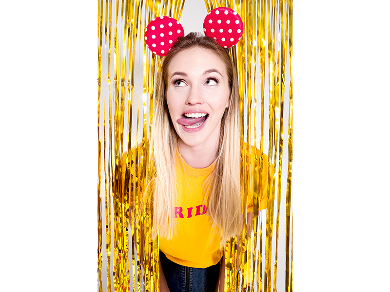 Kurtyna Party w kolorze złotym, szerokość około 90 centymetrów, wysokość około 250 centymetrów.