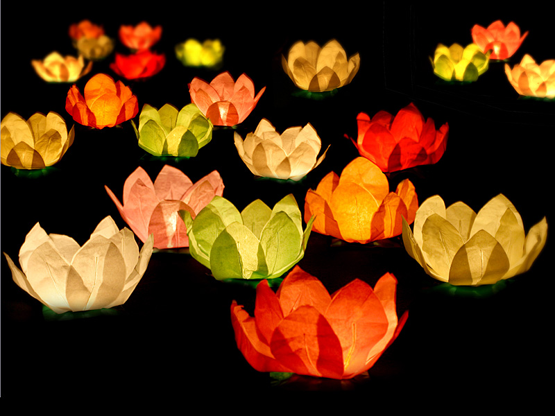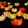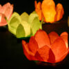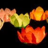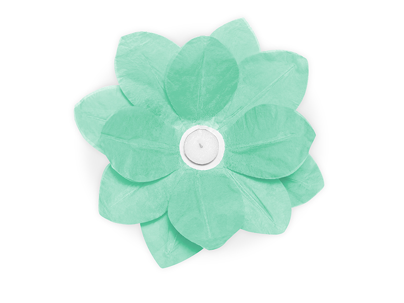 Lampiony pływające, mix kolorów (biały, czerwony, miętowy, pomarańczowy, zielony, niebieski), średnica 29 centymetrów. Każdy lampion posiada świeczkę (podgrzewacz). (1 op. / 6 szt.)