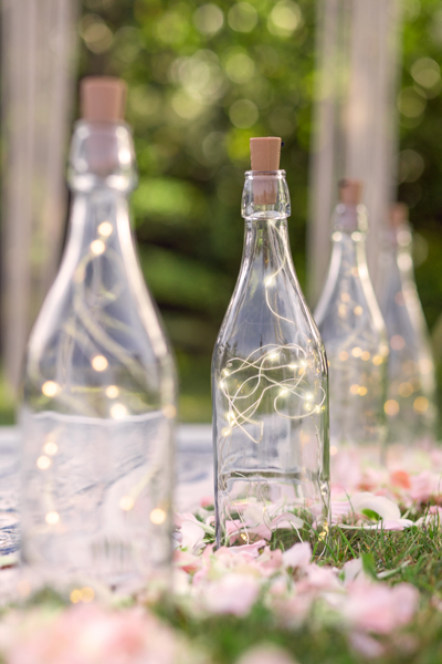 Lampki dekoracyjne LED z korkiem do butelki na drucianym przewodzie z 20 bezbarwnymi lampkami o białej ciepłej barwie światła, długość przewodu z lampkami ok. 197 cm, wymiary korka ok. 2.5 x 4.5 cm. Lampki zasilane bateriami 3 x LR44 (zawarte w zestawie), bez możliwości łączenia z innymi lampkami. Produkt tylko do użytku wewnętrznego. Moc znamionowa: 0.45W; Napięcie znamionowe: 4.5V; Moc żarówki: 0,023W; 2700 K