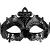 Maska karnawałowa w kolorze czarnym o wymiarach ok. 17 x 9 cm. Wiązana na wstążkę.