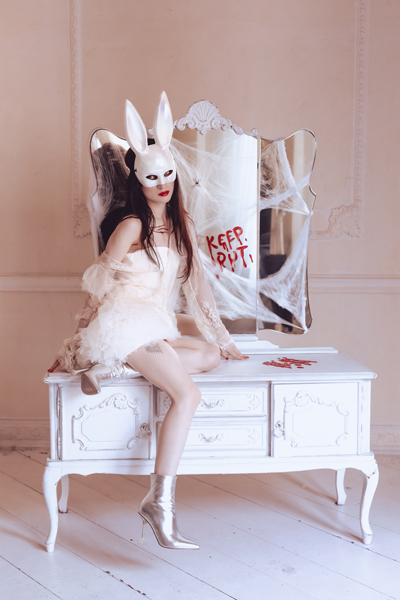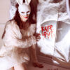 Maska Królik w kolorze białym opalizującym, wymiary maski ok. 16.5 x 34 cm.