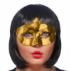 Maska Party w kolorze złotym, wysokość około 8 centymetrów, szerokość około 24 centymetry.