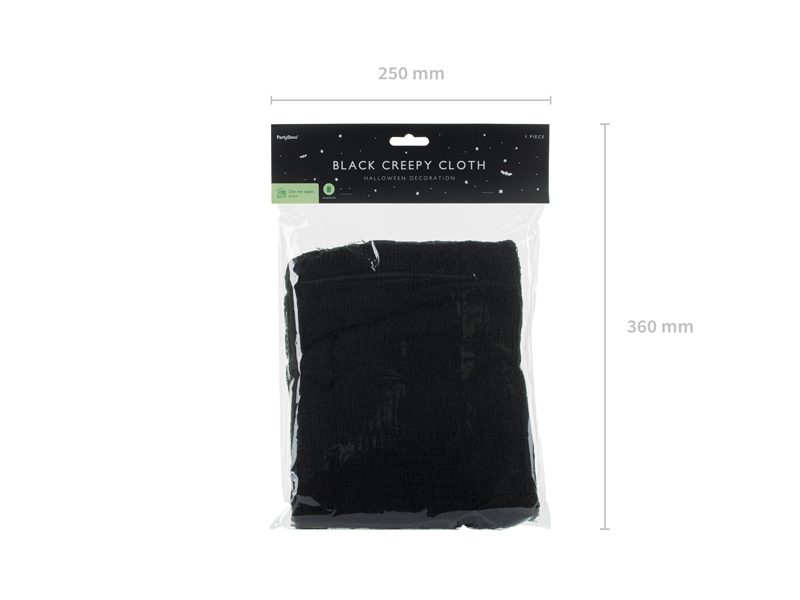 Materiał dekoracyjny w kolorze czarnym, wymiary ok. 0.72 x 9.8 m, przeznaczony do użytku wewnętrznego i zewnętrznego. Skład: poliester – 100%. Sposób konserwacji: prać ręcznie.