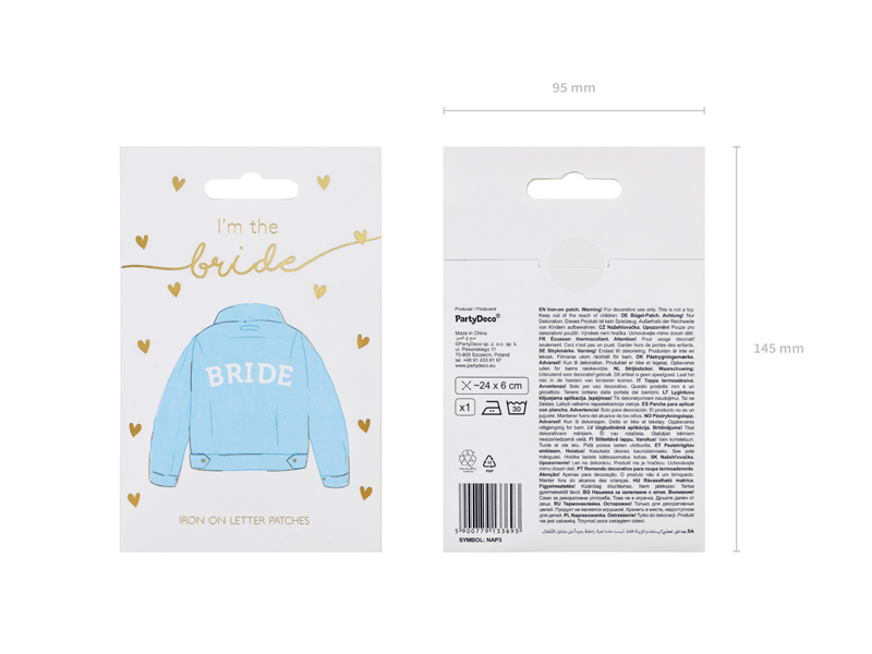 Naprasowanka BRIDE w kolorze białym, wymiary ok. 24 x 6 cm.
