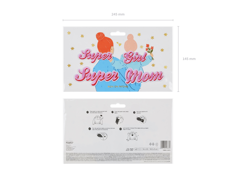 Naprasowanka Supermom, mix kolorów, zestaw zawiera 2 wzory (po 1 sztuce z każego wzoru), wymiary ok. 14 x 3.5 – 19.5 x 5 cm. (1 op. / 2 szt.)