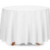 Obrus na stół z matowego materiału w kolorze białym, okrągły, średnica 300 centymetrów.