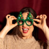 Okulary Świąteczne Choinki, mix kolorów, wymiary: szerokość oprawki ok. 15 cm, wysokość oprawki ok. 12 cm, długość zausznika ok. 14 cm.