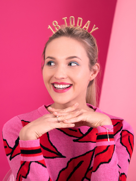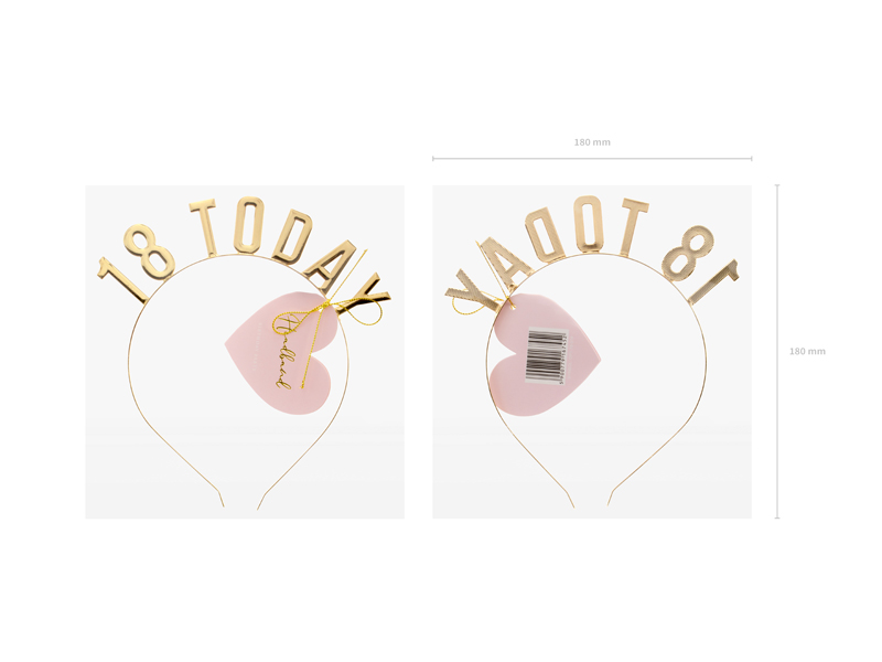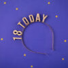 Metalowa opaska z napisem 18 Today w kolorze złotym.