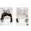 Opaska z czarną, materiałową falbanką oraz liczbą 30 udekorowaną perełkami. Rozmiar całościowy ok 12 x 19,5 cm. Wysokość samej liczby ok. 5,3 cm