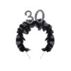 Opaska z czarną, materiałową falbanką oraz liczbą 30 udekorowaną perełkami. Rozmiar całościowy ok 12 x 19,5 cm. Wysokość samej liczby ok. 5,3 cm