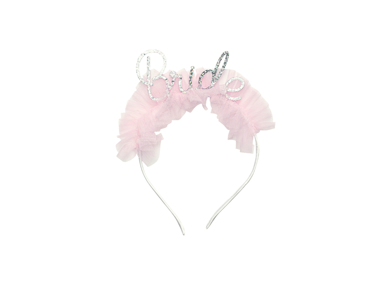 Opaska Bride z falbanką w kolorze różowym, napis holograficzny, wymiary ok. 17,5 x 18 cm