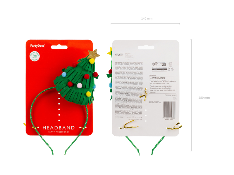 Opaska Choinka w kolorze zielonym, wymiary ok. 13 x 24 cm.