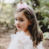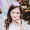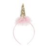 Opaska Jednorożec z falbanką w kolorze różowym, róg cekinowy, wymiary ok. 11 x 25 cm